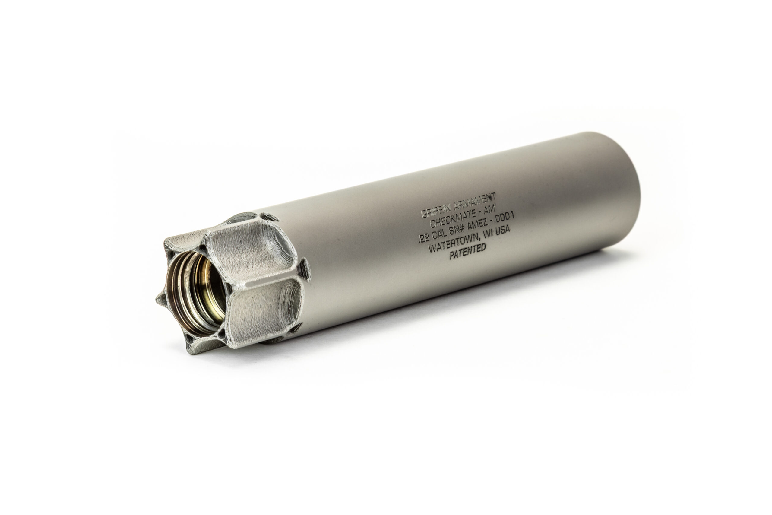 The CHECKMATE-AM™ Silencer is a heavy duty .22cal suppressor constructed from Griffin’s proprietary Nickel 625X powder alloy, utilizing state-of-the-art DMLS additive manufacturing technology.