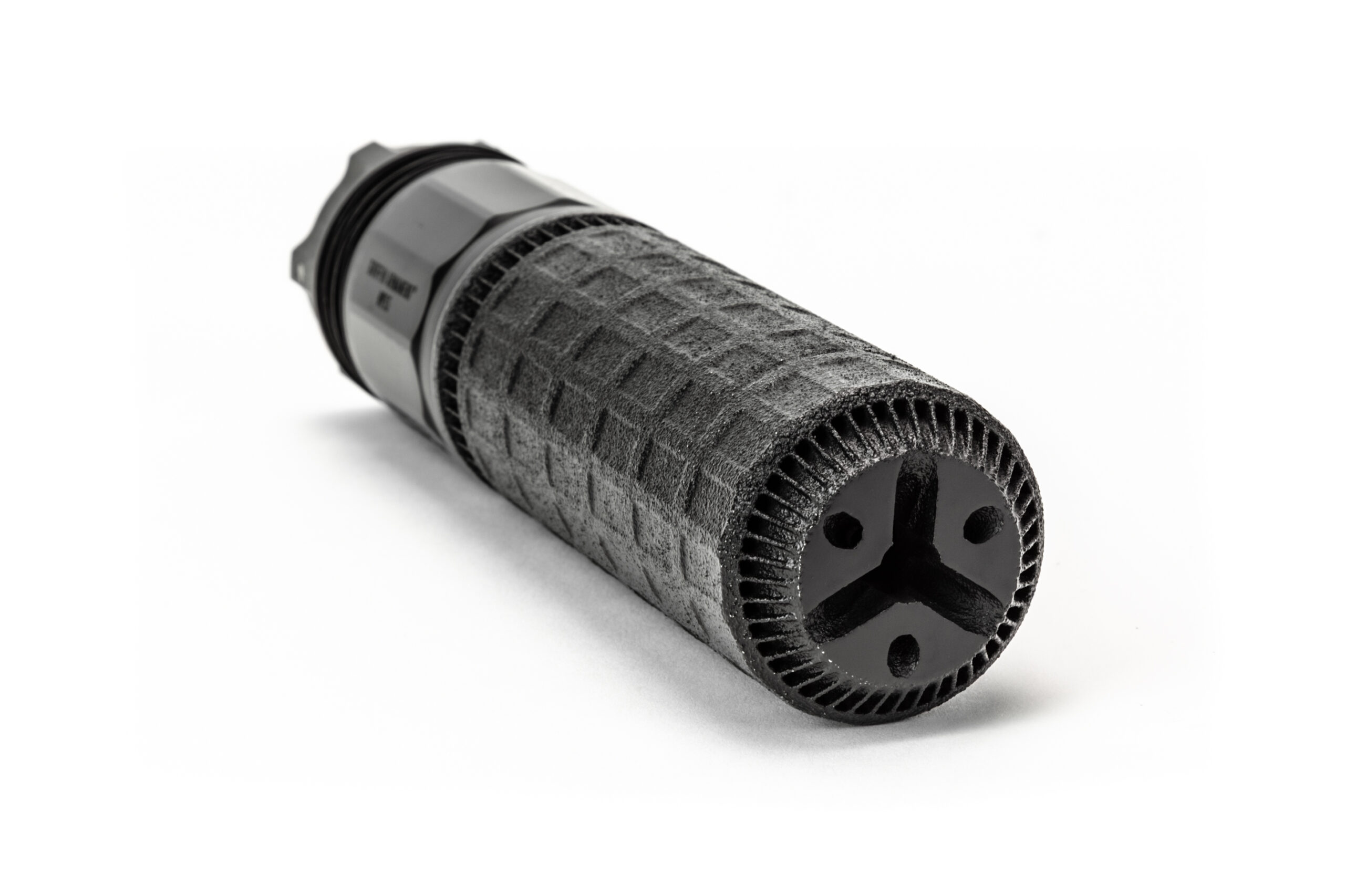 The HRT-556 AM Silencer is a highly durable, true low backpressure .22cal (5.56mm) suppressor constructed from Griffin’s proprietary Nickel 625X™ powder alloy utilizing state-of-the-art DMLS additive manufacturing technology. This is the first major evolution to the DUAL-LOK® family of suppressors which were historically assembled from traditionally-manufactured components. This new manufacturing process yields a solid piece of metal, resulting in unparalleled strength and creation of advanced gas channeling pathways to significantly reduce system backpressure over previous generations.