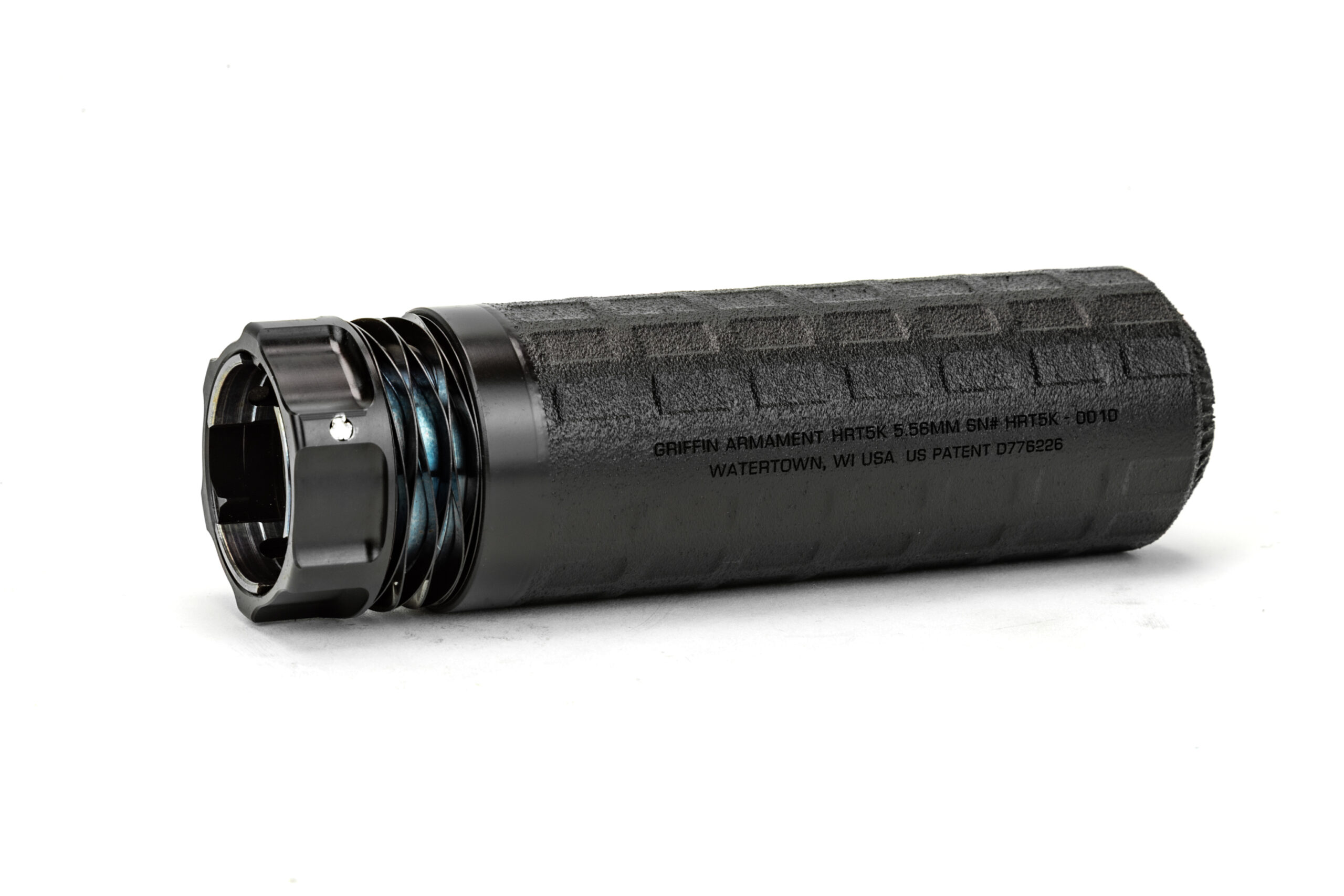 The HRT-5K™ AM Silencer is a compact, highly durable, low backpressure 5.56mm suppressor constructed from Griffin’s proprietary Nickel 625X™ powder alloy utilizing state-of-the-art DMLS additive manufacturing technology. These K suppressors were adapted from Griffin’s aggressive R&D project to develop the full-size HRT-556™ AM. Left handed shooters will benefit from the very low backpressure stack as well as right handed shooters. The HRT-5K™ AM is an ideal suppressor for end users desiring an extremely low backpressure suppressor in a minimal form factor thanks to its 5.22″ overall length.