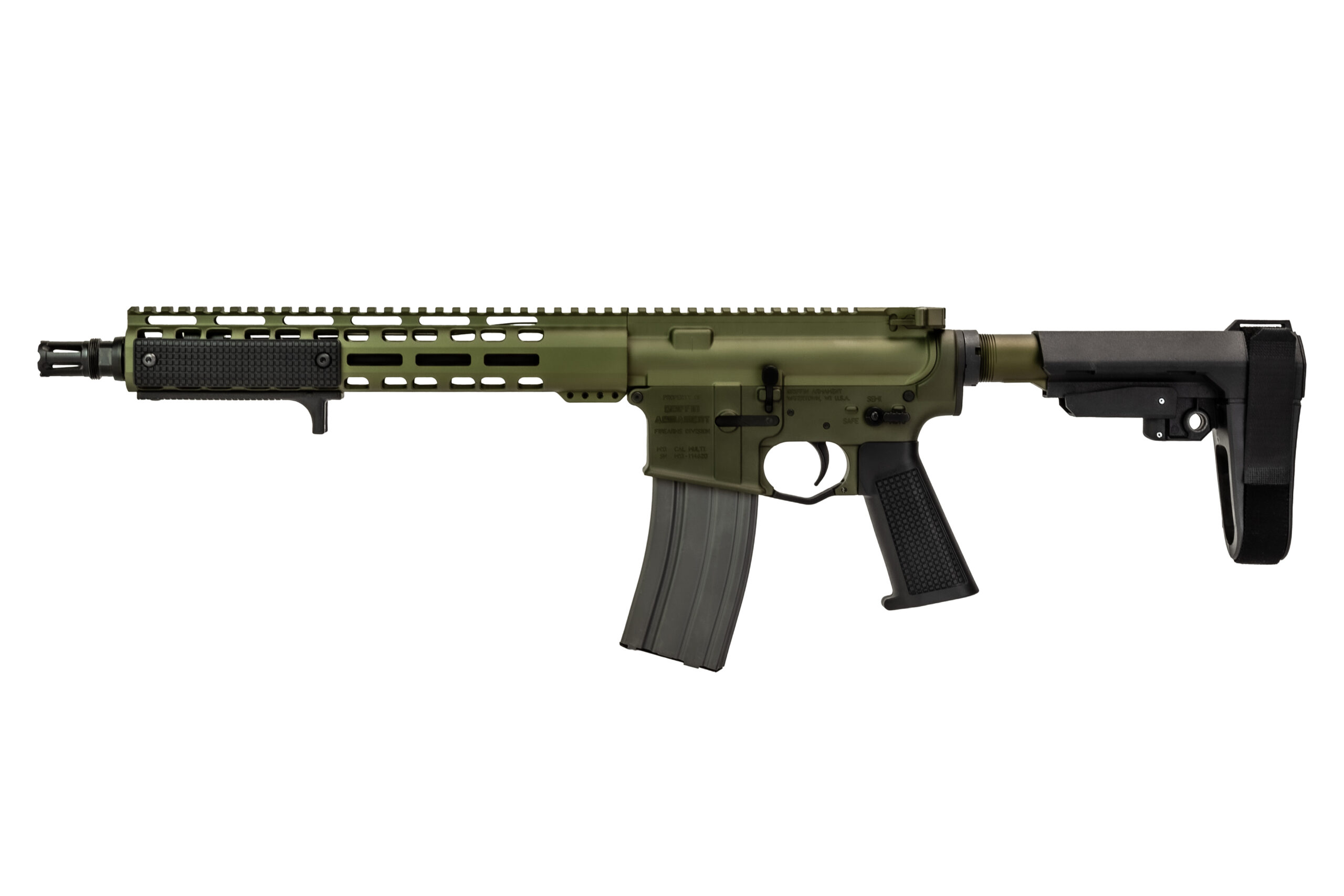 The MK1 CQB 12.5″ .223 Wylde Pistol is a true front line fighting carbine. The tuned mid-length gas system and suppressor optimized buffer system ensure a soft yet reliable gas system suppressed or unsuppressed. Griffin’s Anti-Rotation LOW-PRO Rails provide a rigid, yet lightweight handguard that is comfortable in the hand, yet robust enough to accommodate accessories such as lights and lasers. These rails have a tab that interfaces with the upper to prevent rotation of the rail under torque.