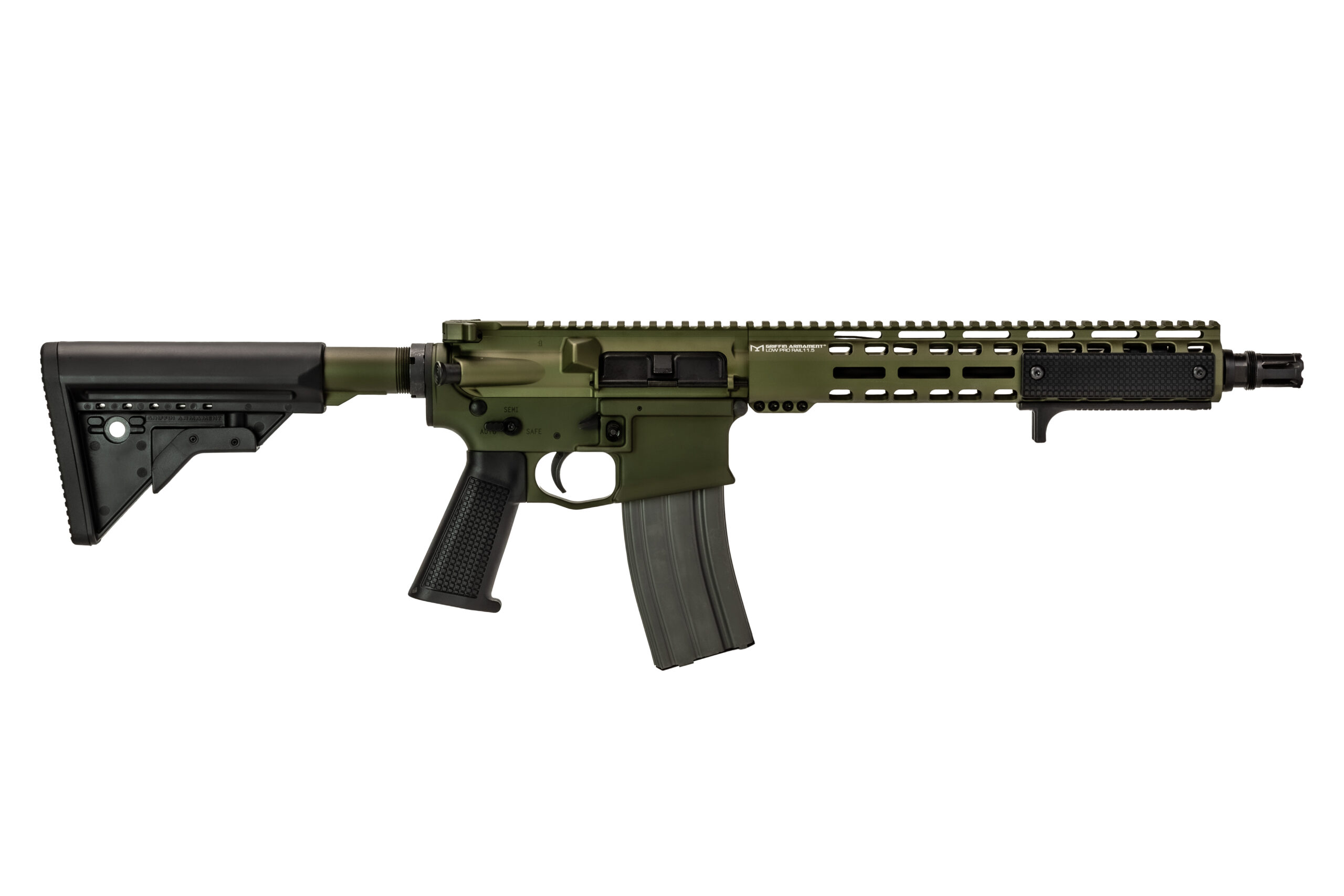 The MK2 CQB 12.5″ .223 Wylde SBR features a tuned mid-length gas system and suppressor optimized buffer system ensuring a soft yet reliable gas system suppressed or unsuppressed. The 416R SS barrel provides exceptional accuracy and durability. We ran one of these barrels to 47,000 rounds 100% suppressed while test firing suppressors with zero baffle strikes and the rifling was still present. The barrel was retired due to extension lug wear, not due to barrel rifling wear. Other case studies such as multiple M24 SWS barrels holding 0.35 MOA to 20,000+ rounds in army testing, provides further evidence that 416R SS is an extremely durable barrel material.