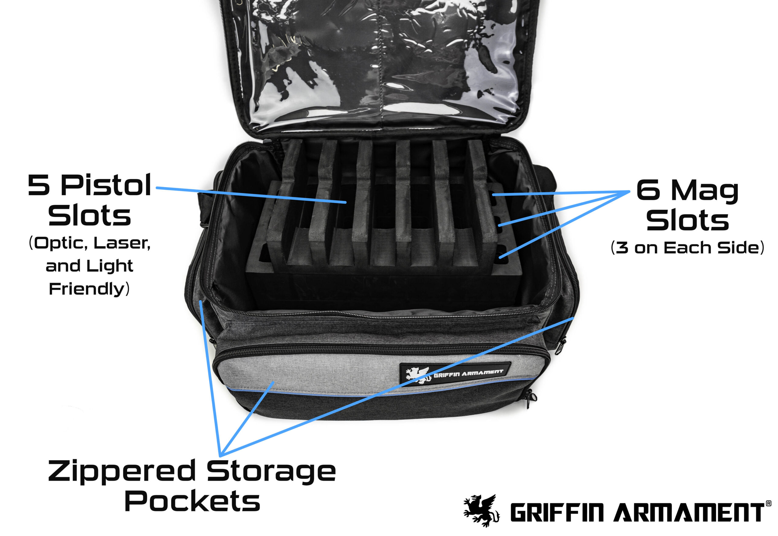 The Griffin Pistol Range Bag is the perfect solution for anyone with a number of handguns looking to store and transport them in one self-contained package. This page is for the Pistol Range Bag, but we also offer a Cleaning Kit with this same Griffin Bag which you can view by clicking here.